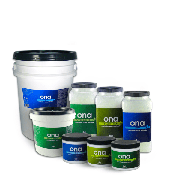 ג’ל ONA זמין במגוון ניחוחות: Fresh Linen (כביסה רעננה), Pro (פורמולה מקצועית מוגברת), Polar Crystal (קריסטל קרחי), Tropics (טרופי) ו-Apple Crumble (פירורי תפוח).